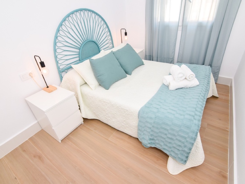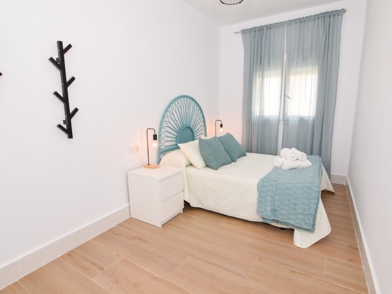 Uno de los dormitorios de matrimonio da acceso a un balcón. El apartamento dispone de aire acondicionado. La cocina dispone de vitrocerámica, nevera, utensilios, microondas y lavadora.